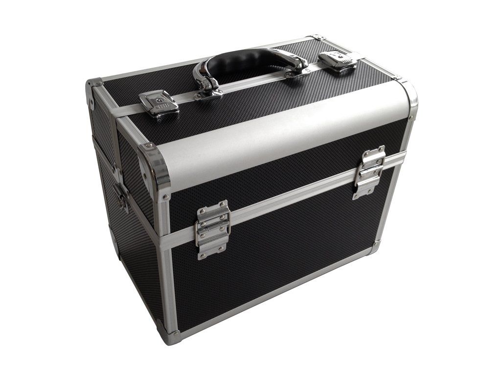 Hliníkový rám se zesílenými rohy. Vnitřní vyjímatelné dělící přepážky pro velké množství nástrojů a dalších pomůcek. Odnímatelný široký popruh. Kufr má horní otvírání a je uzamykatelný.