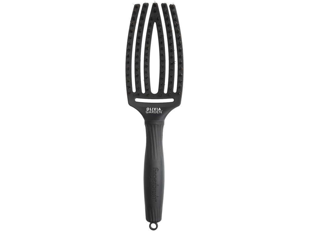 Olivia Garden Fingerbrush je revoluční kartáč navržený pro snadné a šetrné rozčesávání vlasů. Jeho zakřivený tvar dokonale kopíruje tvar hlavy, což zajišťuje maximální pohodlí při používání a precizní styling. Kartáč kombinuje 100% kančí štětiny a nylonové štětiny, které dodávají vlasům přirozený lesk, zároveň zajišťují jemné a efektivní rozčesávání, aniž by vlasy tahaly nebo poškozovaly.
