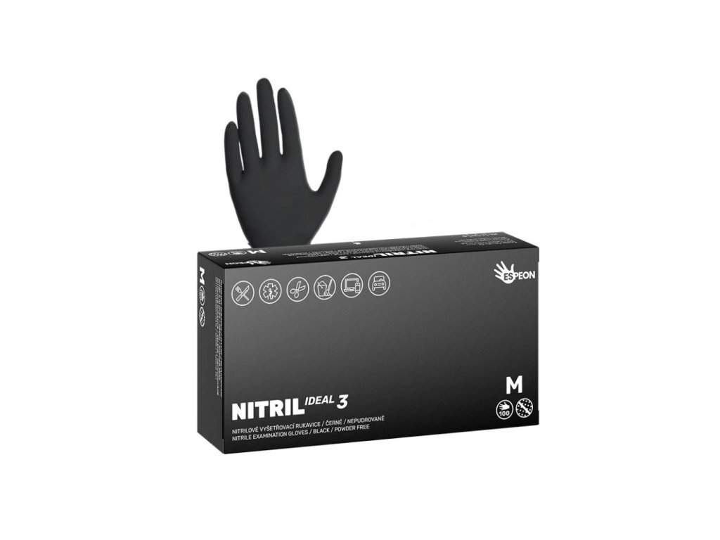 Nitrilové rukavice NITRIL PREMIUM – 100 ks, černé, nepudrované, 4.0 g