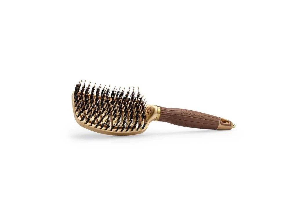Plochá kefa na vlasy s kančími a nylonovými štetinami Olivia Garden Expert Flex Gold & Brown