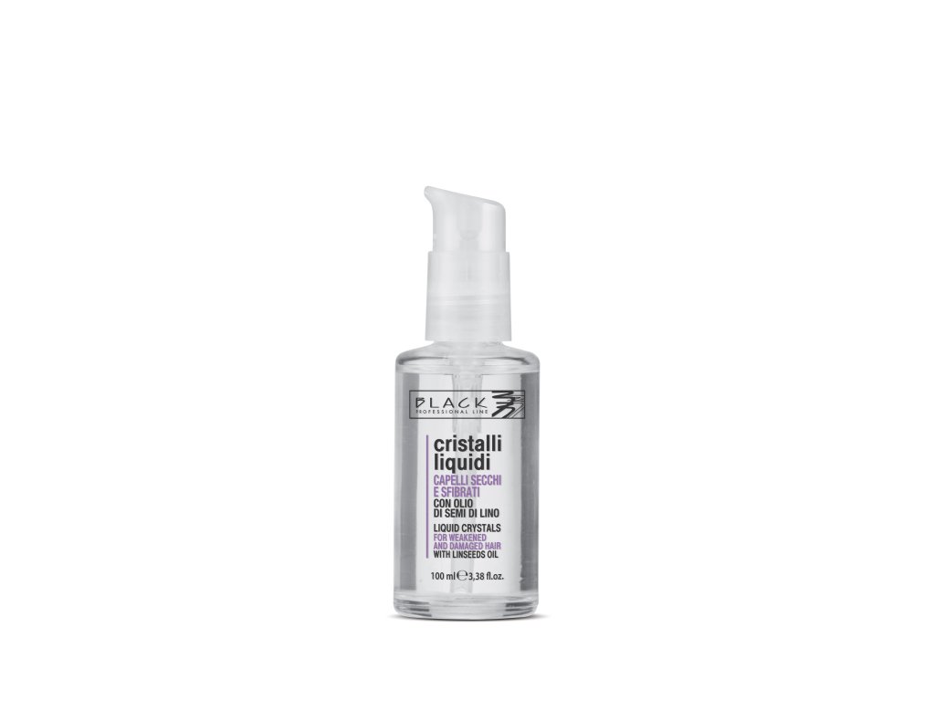 Tekuté krystaly Black s výtažkem z lněných semínek obsahují velké procento oleje se změkčovacím účinkem a chrání proti atmosférickým vlivům a opakovaným chemickým úpravám vlasů (barvení, trvalá a odbarvování). Lněná semínka, obsahující vitamín F bohatý na kyselinu linoleovou, zacelují a ochraňují povrch vlasů, zjemňují a vyhlazují vlasovou kutikulu, díky čemuž jsou vlasy schopné odrážet světlo. Těkavé silikony umocňují zářivost vlasů a vytváří na kutikule neviditelnou ochrannou vrstvu.